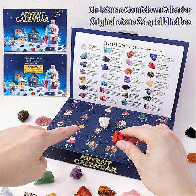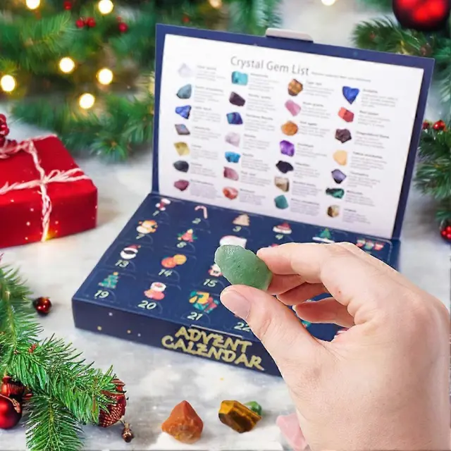 Škatla za presenečenja koledarja 24 dni, 24 kosov pisanih zbirateljskih kristalov, škatla za darila Rock za otroke, odrasle