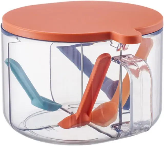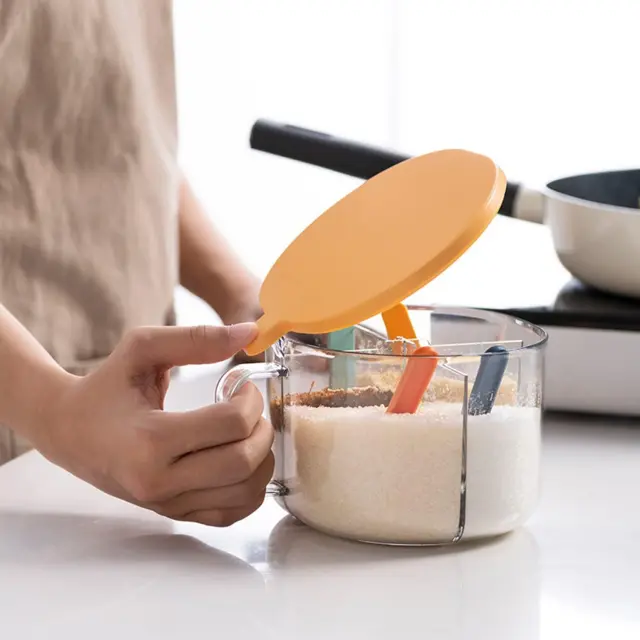 Glavni material je PP, ki ustreza živilskim standardom, ki je varen, neškodljiv in vzdržljiv. Prozoren material vam omogoča, da ves čas veste, koliko začimb je ostalo, in hitro najdete začimbe, ki jih potrebujete med kuhanjem. Ergonomski ročaj je enostaven za držanje, škatlo za začimbe pa je mogoče odpreti z eno roko za enostavno upravljanje.