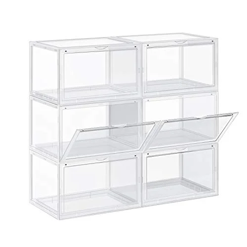 Škatle za čevlje, 6 kosov organizatorjev za čevlje s prozornimi vrati, plastična škatla za čevlje, velikost UK 11, 36 x 28 x 22 cm, prozorna LSP06CW.
