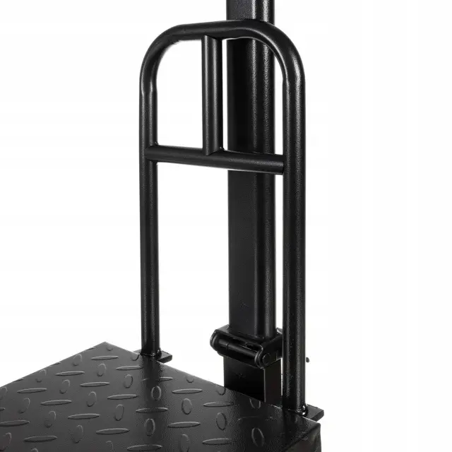 OJAČANA PLETFORMA Z NASLONJALOM – ojačana platforma iz kariraste nerjaveče pločevine je element tehtnice, ki se uporablja za postavitev predmeta, katerega težo želimo izmeriti. Ta platforma je ojačana, kar pomeni, da lahko podpira težje predmete in zagotavlja večjo stabilnost pri tehtanju.