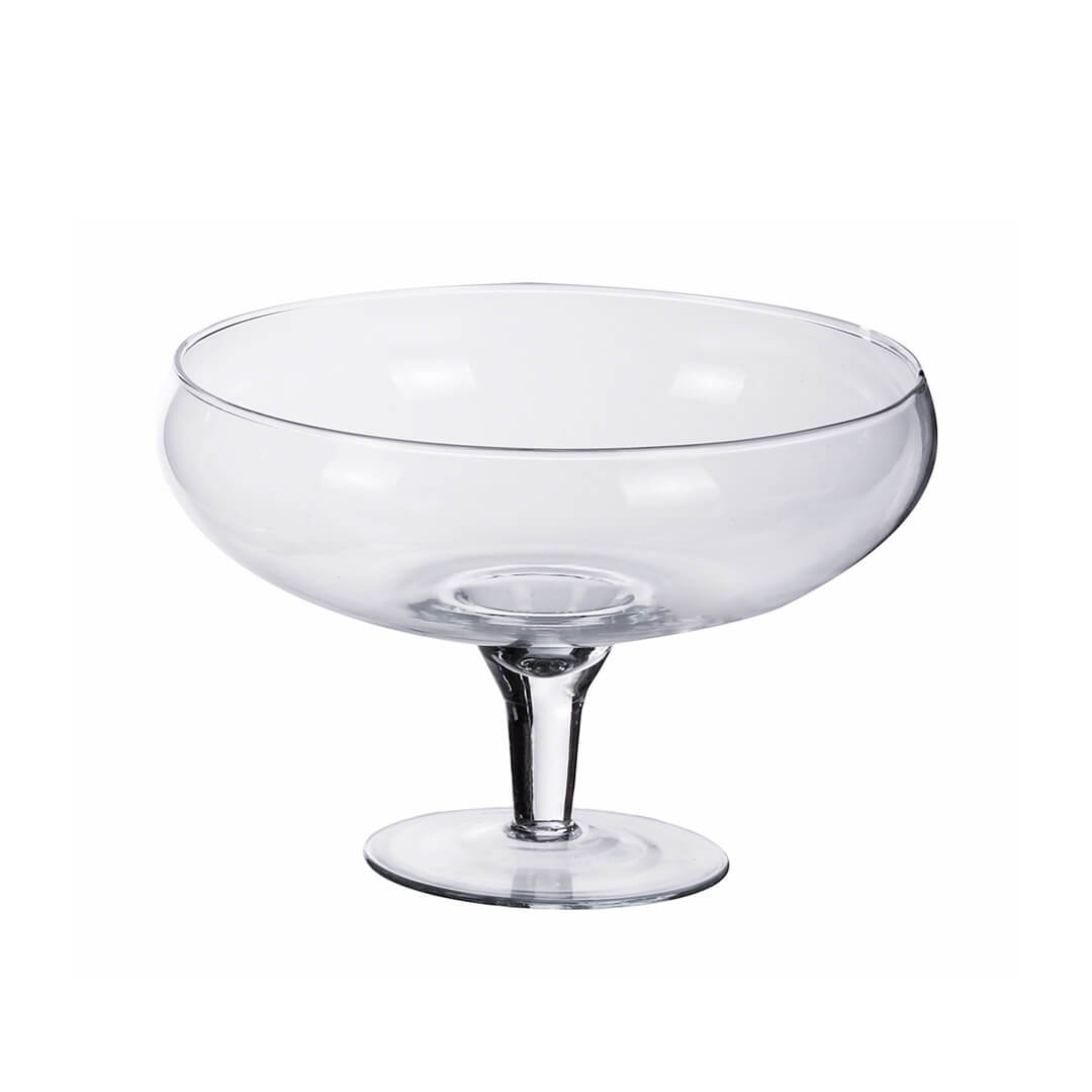 Elegantna steklena skleda na podstavku je praktičen in stilski dodatek za vašo kuhinjo ali jedilnico. Idealna je za serviranje sadja, sladkih dobrot ali prazničnih prigrizkov. Pomijte jo ročno.