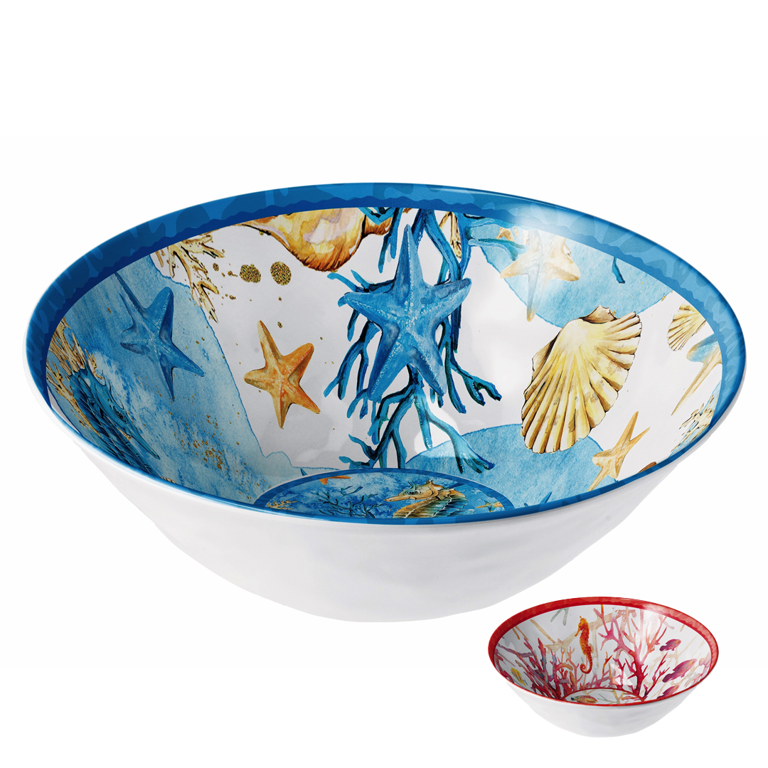 Skleda Shell premera 32 cm je odlična izbira za vse, ki želijo jedem dodati pridih morja. Njen živahen dizajn bo navdušil goste in popestril vsako mizo. Skleda ni le vizualno privlačna, ampak tudi idealna za vse vrste priložnosti, od vsakodnevnih obrokov do posebnih dogodkov. Izdelana je iz melamina, ki je trpežen, lahek material, odporen na udarce ter praske. Skledo krasijo očarljivi morski motivi, ki vključujejo morske konjičke, školjke, morske zvezde in korale. Na voljo je v dveh osupljivih barvah - modri in rdeči. Zaradi svoje odpornosti je primerna za uporabo na prostem, na piknikih, kampiranjih ali vrtnih zabavah, kot tudi v notranjih prostorih. Idealna je za postrežbo solat, prigrizkov, testenin, morskih sadežev, sadja ali celo kot dekorativni kos na vašem kuhinjskem pultu. Z elegantnim in živahnim morskim motivom, ki prinaša svežino in veselje v vaš dom, bo ta skleda iz melamina zagotovo postala priljubljen kos v vaši zbirki posode. NAMIG: Dopolnite jo z ostalimi izdelki iz iste linije Shell.