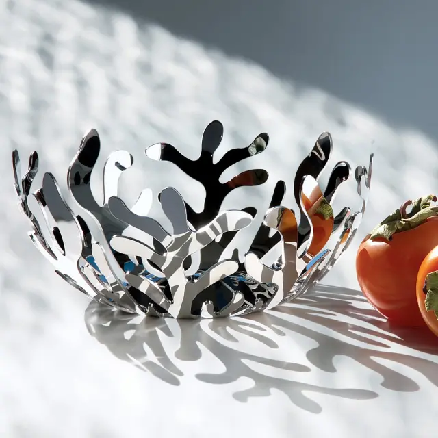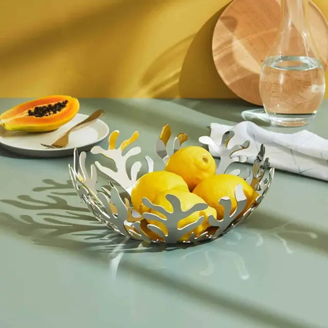 Oblikovalka Emma Silvestris je spretno raziskovala podobe morskega sveta, da bi ustvarila skledo za sadje Mediterraneo, ki uteleša bistvene oblike in lahkotnost organizmov, ki naseljujejo ocean. Okrogla oblika premera 21 cm, z zanimivim dizajnom koral, je izdelana iz kakovostnega poliranega nerjavečega jekla 18/10. Čudovito se bo podala v tradicionalen kot tudi sodoben interier.