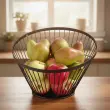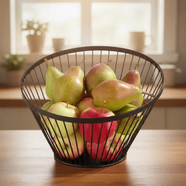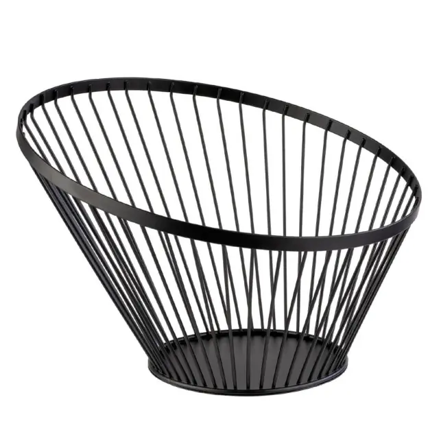 Elegantna žična košara Vista je popolna izbira za shranjevanje in postrežbo kruha, sadja ali zelenjave. Izdelana je iz kakovostne kovine s premazom, varnim za stik z živili, ki zagotavlja dolgotrajno uporabo in varnost pri vsakodnevni rabi. Njena odprta zasnova omogoča kroženje zraka, kar ohranja živila sveža dlje časa. S svojim sodobnim videzom v črni barvi se lepo poda k vsaki jedilni mizi ali bifeju ter doda pridih elegance prostoru. Pomijte jo ročno.