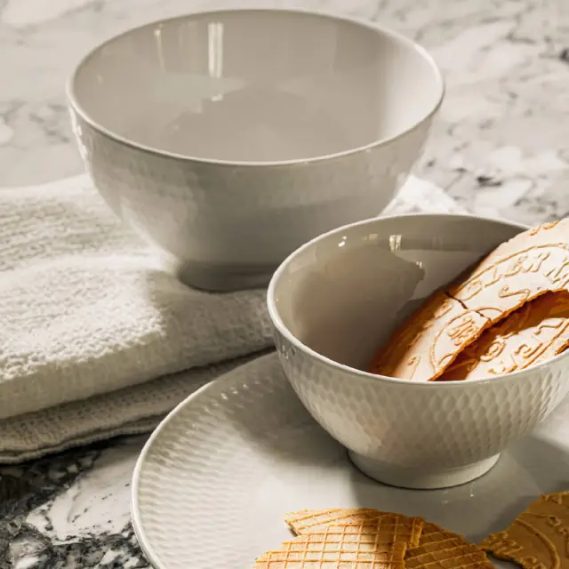 Skledica Diamonds premera 18 cm je namenjena postrežbi hrustljavih solat, testenin, dišečega riža in ostalih prilog. Nežna bela barva s prefinjeno površinsko strukturo, ki spominja na diamante, bo popestrila vsako mizo. Izdelana je iz kakovostnega porcelana odpornega na temperaturo in primernega za vsakodnevno uporabo. Skledico lahko postavite v mikrovalovno pečico in pomijete v pomivalnem stroju. Dopolnite jo še z ostalimi izdelki iz iste linije Diamonds, prestižne blagovne znamke Maxwell&Williams.