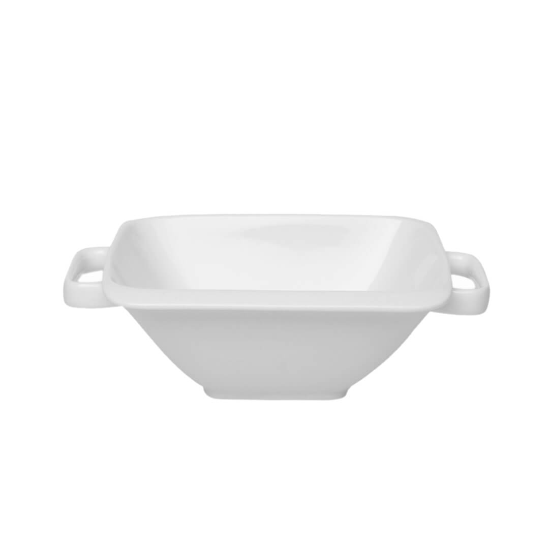 Skledica za juho iz linije Infinity je izdelana iz belega porcelana z odporno gladko površino, ki ohranja svoj eleganten videz tudi po dolgotrajni uporabi. Značilni oglat dizajn linije Infinity se kaže v prefinjenih oblikovnih detajlih, medtem ko dva ročaja omogočata varno in udobno držanje – idealno za vroče juhe, mineštre ali kremne obroke. Skledica je popolna za serviranje predjedi ali toplih jedi, zato je primerna tako za vsakodnevne obroke kot za posebne priložnosti. Lahko jo pomivate v pomivalnem stroju ali uporabite v mikrovalovni pečici. NAMIG: dopolnite jo s podstavkom za skledico za juho Infinity.