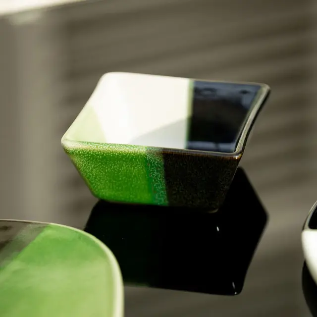 Kvadratna skledica Simposio očara s sodobno obliko in kombinacijo barv. Izdelana je iz kakovostne keramike (Stoneware), žgane pri zelo visokih temperaturah, kar ji daje izjemno trdnost, odpornost na udarce in dolgotrajno obstojnost. Skledica združuje sodoben dizajn z naravno toplino materiala, zato se lepo poda tako k vsakodnevni kot tudi bolj svečano pogrnjeni mizi. Primerna je za pomivanje v pomivalnem stroju in uporabo v mikrovalovni pečici.