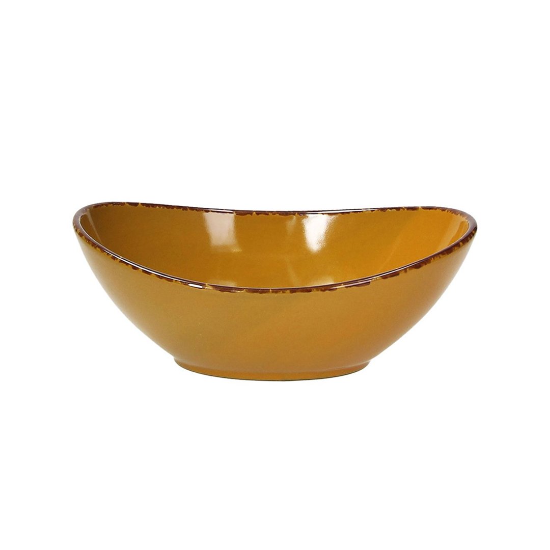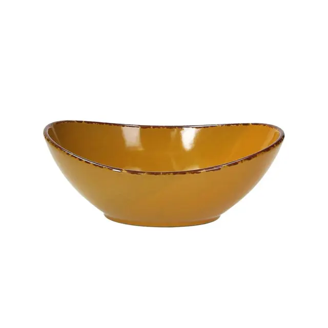 Ovalna skledica Vulcania Veggie ima prostornino 280 ml in meri 16 cm v dolžino in 11 cm v širino. Linija Vulcania Veggie je unikatna zbirka porcelana rdeče, oranžne in zelene barve s teksturo, ki spominja na ohlajeno lavo in je primerna za vsakdanjo ali profesionalno rabo v restavracijah. Ta porcelanasta skledica oranžne barve je popolna za postrežbo takosov, slavnih zavitkov mehiške kuhinje, ki jih jemo s čilijem, mesom, zelenjavo in značilnimi pekočimi omakami ter odlična za serviranje ostalih prigrizkov in namazov. S svojo svetlo in živahno barvo prinaša veselje in živahnost na vašo mizo in jo je mogoče kombinirati s številnimi dodatki in dopolnili iz iste linije v različnih barvnih kombinacijah. Za ta kakovosten porcelan je značilna velika sposobnost absorpcije toplote, ki se nato postopoma sprošča, s čimer se dlje časa ohranja konstantna temperatura postrežene hrane. Primeren je za uporabo v mikrovalovni pečici in pomivanje v pomivalnem stroju.