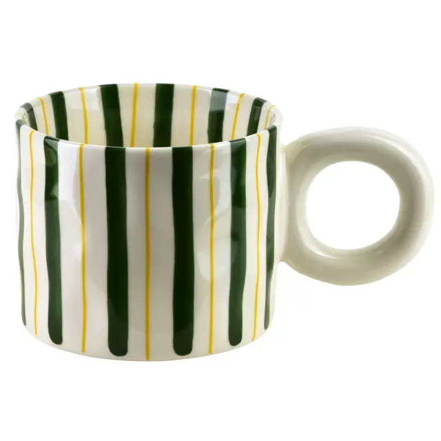 Eleganten porcelanast kos za vsakdanjo rabo in posebne priložnosti — skodelica RODI HTPC3794-SR s prostornino 380 ml združuje sodoben dizajn z zanesljivo funkcionalnostjo. Izdelana iz kakovostne porcelane, skodelica navduši z drobno kombinacijo zelenih in rumenih pasov na beli osnovi ter ergonomskim ročajem za udoben oprijem. Kompaktne mere (10 x 15,5 x 8 cm) in prefinjena oblika omogočajo enostavno serviranje kave, čaja ali drugih toplih in hladnih napitkov.