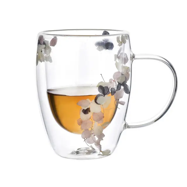Odkrijte prefinjenost steklenega lončka PETER FLOWERS (320 ml) — izdelan je iz visokokakovostnega borosilikatnega stekla in se ponaša z dvoslojno konstrukcijo, ki zagotavlja boljšo toplotno izolacijo ter daljše ohranjanje temperature napitkov. Med notranjo in zunanjo steno so vdelani skrbno izbrani posušeni cvetovi, ki ustvarijo nežno, naravno dekoracijo ter prispevajo k estetskemu in pomirjajočemu občutku ob vsakem požirku.