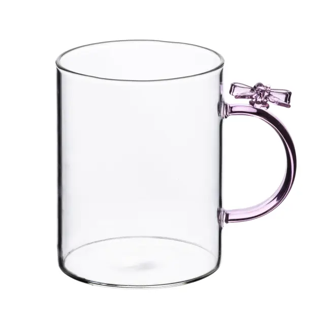 Eleganten kozarec PETER RIBBON, volumna 400 ml, iz kakovostnega borosilikatnega stekla, združuje prefinjenost in vsakodnevno uporabnost. Kozarec je lahek, odporen na temperaturna nihanja in odličen za serviranje kave, čaja ali drugih napitkov. Posebnost izdelka je rožnato uho z dekorativno pentljo, ki mu daje romantičen in izviren videz — primeren tako za darilo kot za vsak dan.