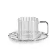 Skodelica za črno kavo Luce združuje eleganten videz in funkcionalno obliko. Izdelana je iz kakovostnega borosilikatnega stekla s prepoznavno črtasto reliefno površino, ki ustvarja zanimiv svetlobni učinek ter skodelici doda prefinjen, sodoben značaj. S prostornino 100 ml je idealna za postrežbo črne kave ali espressa. Njena kompaktna velikost omogoča prijeten oprijem, hkrati pa elegantna oblika lepo dopolni vsako pogrnitev mize ali kavni kotiček. Skodelica je primerna za uporabo v mikrovalovni pečici in za pomivanje v pomivalnem stroju, zato je praktična za vsakodnevno uporabo, obenem pa dovolj estetska tudi za posebne trenutke ob skodelici kave.