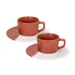 Set dveh skodelic za kavo s podstavkom Milk&Coffee Rice je popolna izbira za ljubitelje črne kave. Izdelan je iz porcelana New Bone China, ki združuje prefinjen videz, izjemno trpežnost in prijetno gladko teksturo. Sofisticiran videz skodelic s prostornino 90 ml, poskrbi za prijetno izkušnjo ob vsakem požirku vaše najljubše kave. Edinstvena kombinacija belih in naravnih tonov v opečnato-rjavi barvi je dopolnjena s subtilnim rustikalnim vzorcem. Set je idealen za domačo uporabo ali kot čudovito darilo za kavne navdušence. Primeren je za pomivanje v pomivalnem stroju in uporabo v mikrovalovni pečici.