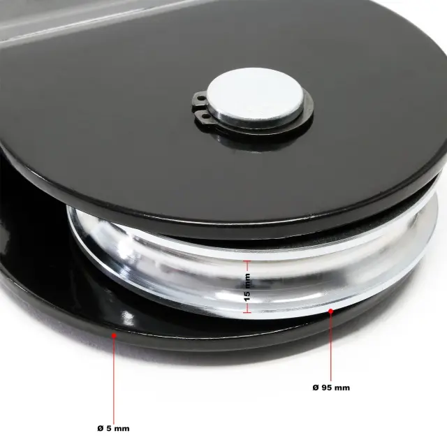 • preusmeritev kabla • porazdelitev sile • natezna obremenitev max. 8000 kg • z zaščito proti zvitju kolesne osi Pred uporabo os škripca podmažite Barva: Naključna