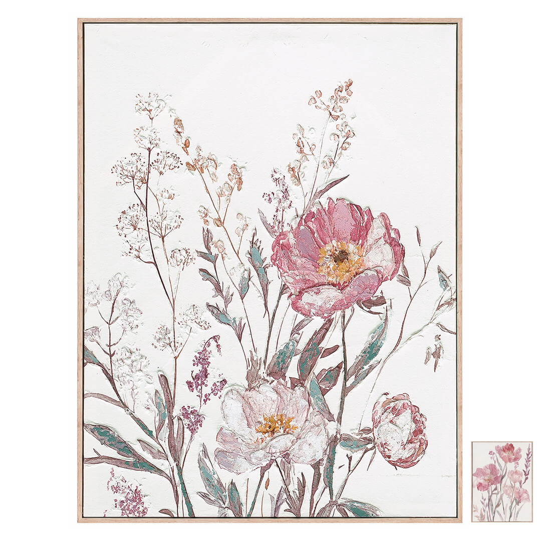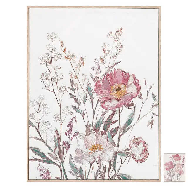 Pravokotna slika s cvetličnim dekorjem je eleganten stenski poudarek, ki v prostor vnese svežino, barvitost in pridih narave. Nežen cvetlični motiv ustvarja občutek lahkotnosti ter topline, hkrati pa prostoru doda estetsko dovršenost.