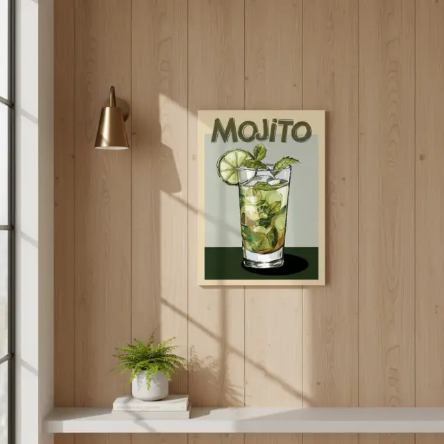 Slika na platnu dimenzije 30 x 40 cm z risanim motivom priljubljenih koktajlov je igriv in sodoben dekorativni dodatek za vsak prostor. Ilustracije pijač, kot so Tequila, Mojito, Pina Colada in Gin Tonic, prinašajo sproščeno vzdušje ter pridih poletne energije.
