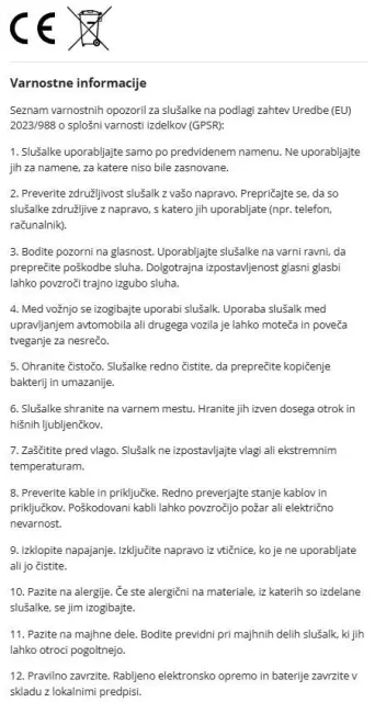 Slike o varnosti izdelka vsebujejo opozorila na embalaži izdelka in lahko vključujejo ključne varnostne informacije, povezane z določenim izdelkom.