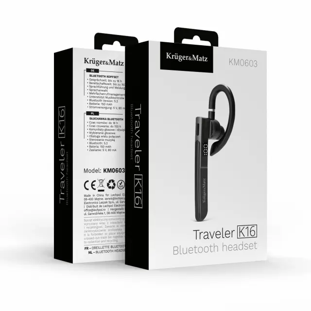 Slušalka Bluetooth KRUGER-MATZ Traveler K16 za prostoročno telefoniranje, črna