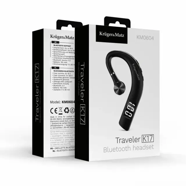 Slušalka Bluetooth KRUGER-MATZ Traveler K17 za prostoročno telefoniranje, črna