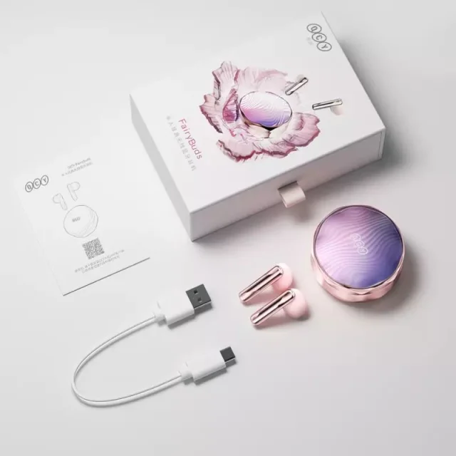 Slušalke Bluetooth za v uho QCY T21 FairyBuds, Floral Pink