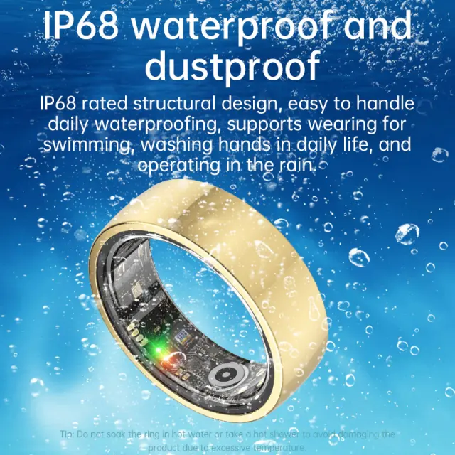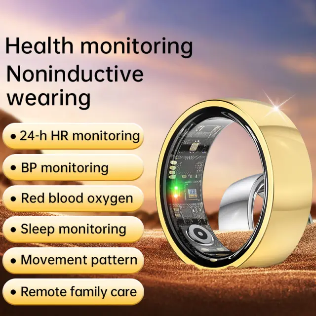 Smart Ring R1000 – Monitor spanja, Bluetooth 5.0, Monitor kisika v krvi Gold 13
