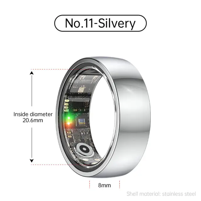 Smart Ring R1000 – Monitor spanja, Bluetooth 5.0, Monitor kisika v krvi Silver 11