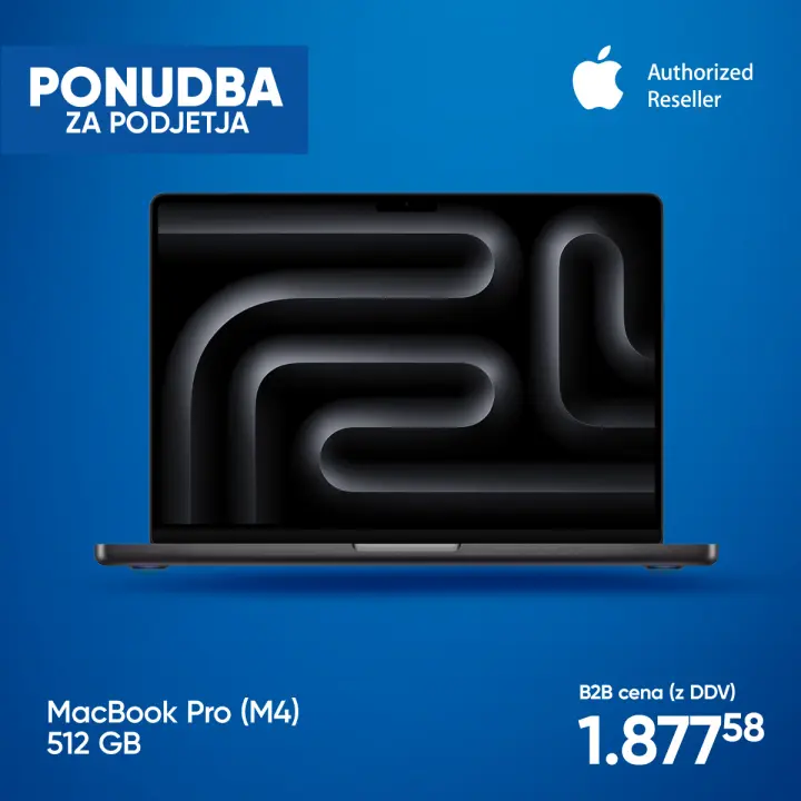 Opremite svoje podjetje z najnaprednejšo Apple tehnologijo po posebnih pogojih. Na voljo je celoten nabor Apple izdelkov – od zmogljivih MacBook računalnikov, tudi modelov po naročilu, do iPhonov, iPadov, AirPodov, tipkovnic, kablov, ovitkov in druge dodatne opreme.