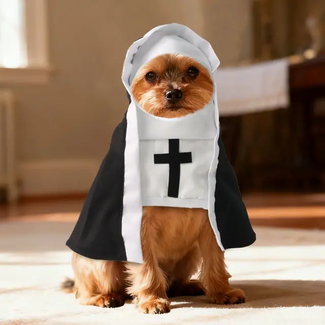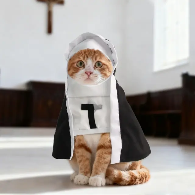 Smešna Pustna Obleka Nune za Hišne Ljubljenčke - Smešna Preobrazba za Pse in Mačke M