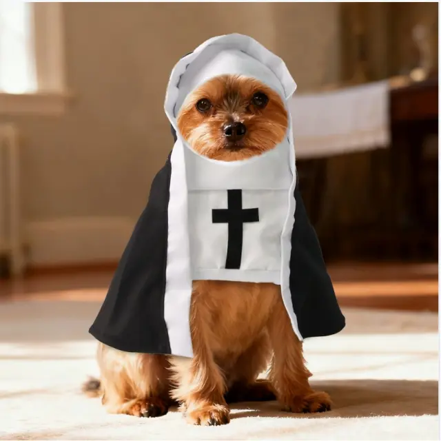 Smešna Pustna Obleka Nune za Hišne Ljubljenčke - Smešna Preobrazba za Pse in Mačke S