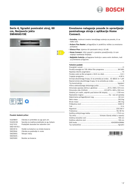 BOSCH SMI4HAS19E vgradni pomivalni stroj