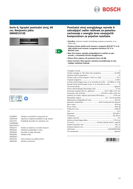 BOSCH SMI6ECS12E vgradni pomivalni stroj