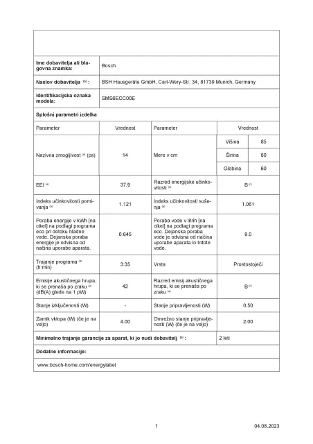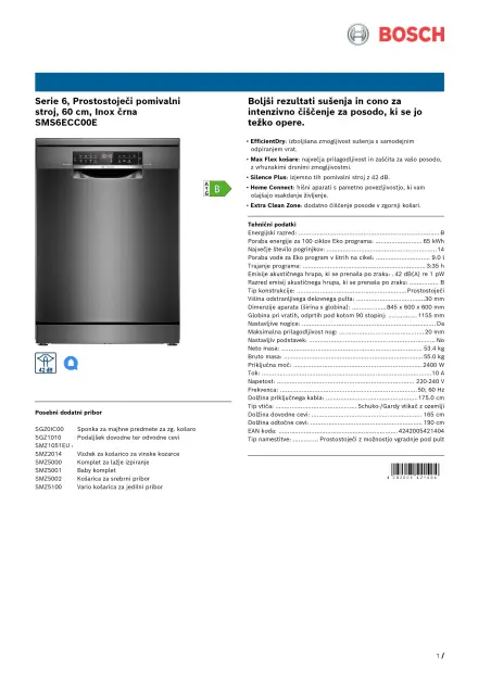 BOSCH SMS6ECC00E prostostoječi pomivalni stroj