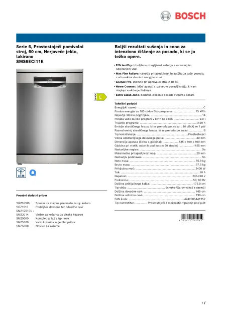 Odprta emb - BOSCH SMS6ECI11E prostostoječi pomivalni stroj