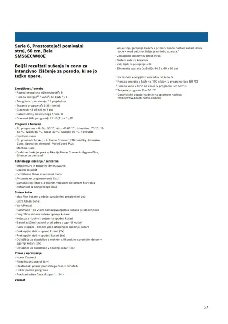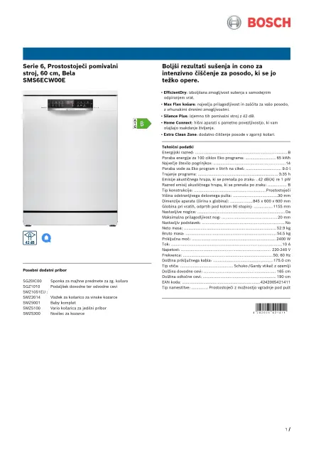 BOSCH SMS6ECW00E prostostoječi pomivalni stroj