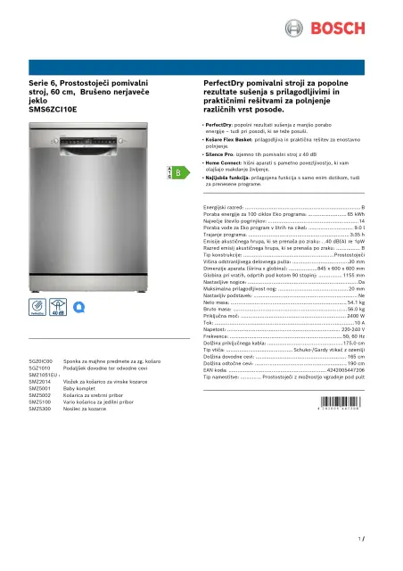 BOSCH SMS6ZCI10E prostostoječi pomivalni stroj