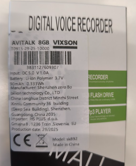 Samodejno začne snemati, ko zazna zvok 45 dB, in varčuje z baterijo, ko zazna tišino.