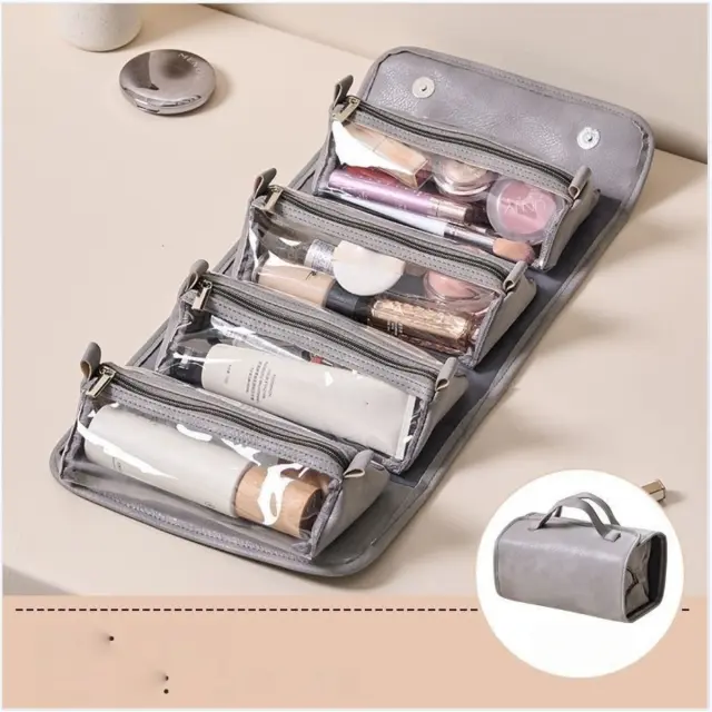 Snemljiva 4-v-1 prenosna torbica za ličila velike prostornine - PU usnje Grey