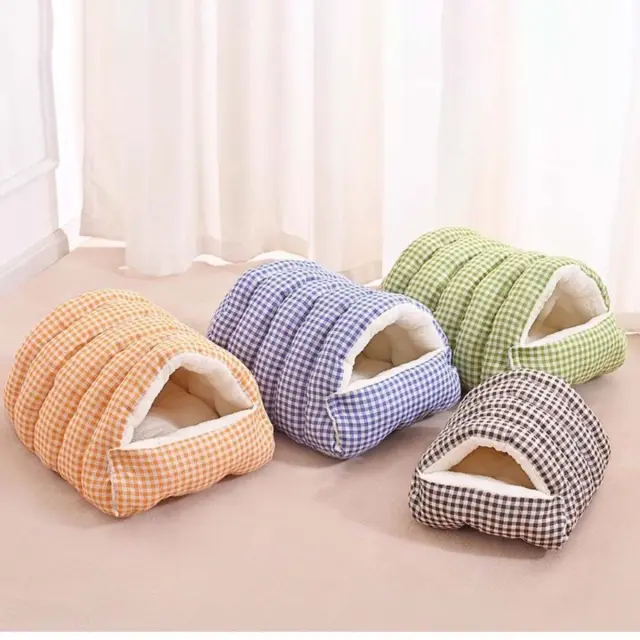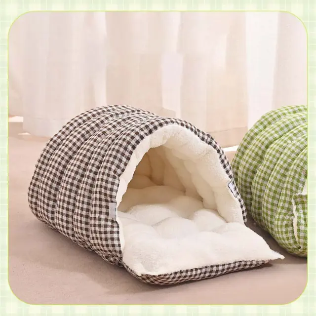 Topla in zaprta zasnova: Ta zaprta postelja za hišne živali zagotavlja občutek varnosti in topline, zaradi česar je popolna za hišne ljubljenčke, ki se radi zakopljejo ali stisnejo. Zasnova, podobna jami, ustvarja prijeten in pomirjujoč prostor, ki ščiti vašega ljubljenčka pred prepihom in zagotavlja občutek zasebnosti. To je še posebej koristno v hladnejših mesecih, saj zaprta struktura pomaga zadrževati telesno toploto in ohranja vašega ljubljenčka toplega in udobnega. Mehka in plišasta notranjost dodatno poveča občutek varnosti in sprostitve ter spodbuja vašega ljubljenčka k počitku in polnjenju energije. Odprt vhod omogoča vsestransko uporabo, ki ustreza željam vašega ljubljenčka in spreminjajočim se letnim časom. Ne glede na to, ali ima vaš ljubljenček raje popolnoma zaprt prostor ali bolj odprto in zračno okolje, se lahko ta postelja zlahka prilagodi njegovim potrebam.