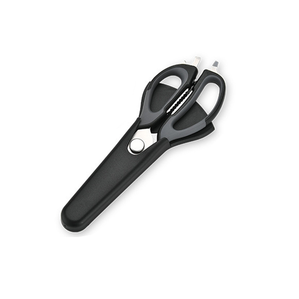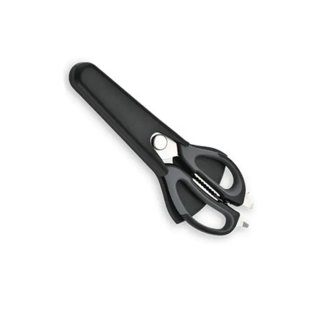 Vgrajen magnet za priročno shranjevanje: Te škarje, opremljene z močnim vgrajenim magnetom, lahko priročno shranite na katero koli magnetno površino v kuhinji. Tako so vedno na dosegu roke, kadar koli jih potrebujete, in pomaga, da so vaši pulti organizirani.