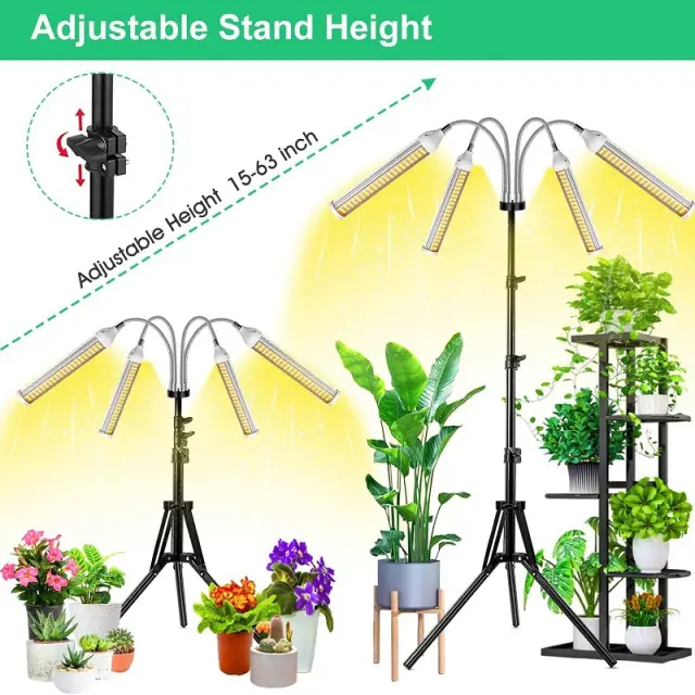 Nadgrajena 4-glavna svetilka za rastline: Najnovejša nadgrajena 4-glavna svetilka za rastline ponuja širšo pokritost kot luči za dve ali tri naglavne rastline. 4 glave omogočajo hkratno gojenje več rastlin. Primerno za sobne rastline, sobne rastline, listne potaknjence, rastlinjake itd., pomaga pospešiti rast sobnih rastlin, cvetočih rastlin, listnatih rastlin in sukulentov.