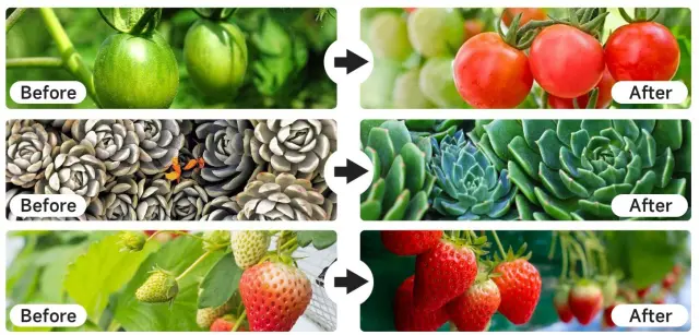 Učinkovita kombinacija rdeče in modre svetlobe: Rdeča svetloba spodbuja fotosintezo, kalitev, cvetenje in plodove; Modra svetloba poskrbi, da rastline absorbirajo več energije s sintezo klorofila, kar pomaga pri kalitvi; Resnično edinstvena lučka za sobne rastline, ki oddaja celoten spekter valovnih dolžin od 380 nm do 840 nm, podobno kot naravna sončna svetloba.