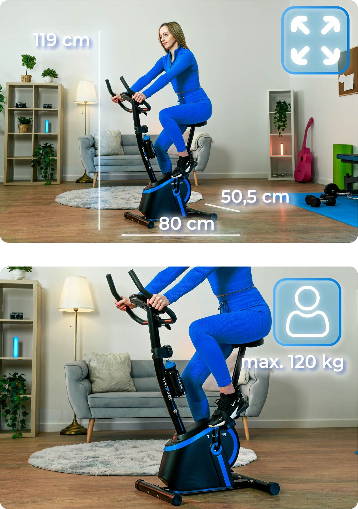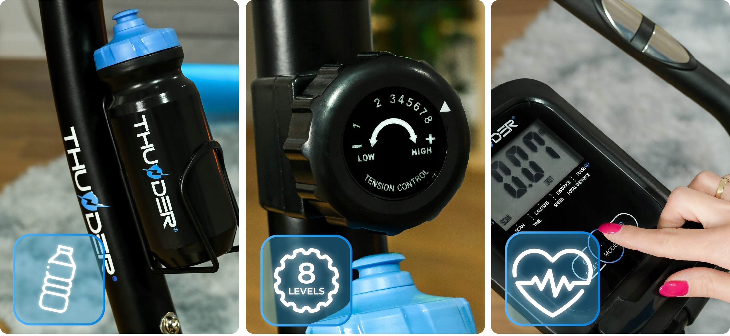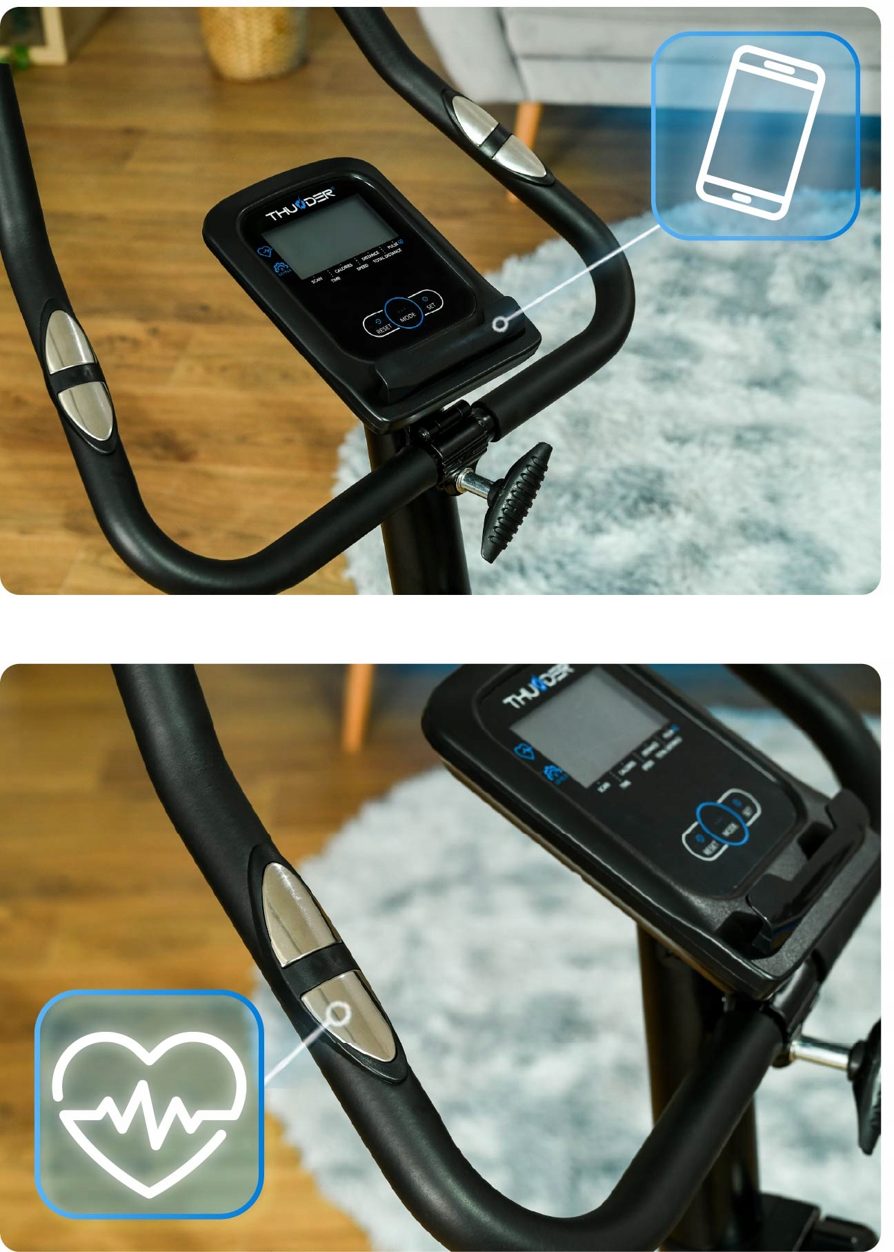 Pokončno sobno kolo MICRUS znamke THUNDER® je popolna rešitev za izboljšanje telesne pripravljenosti – združuje udobje in učinkovitost ter omogoča prilagojeno vadbo glede na vaše potrebe.