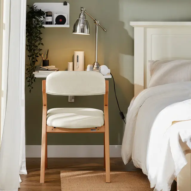 Izbočeno naslonjalo sledi naravni liniji hrbtenice in nudi odlično oporo. Stolica je idealna rešitev za občasne goste ali majhne prostore.