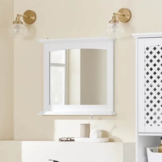 SoBuy BZR212-W Kopalniška stenska omarica z ogledalom in polico, bela 60x6x53,5 cm MDF E1 in steklo