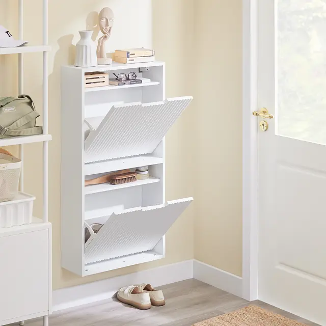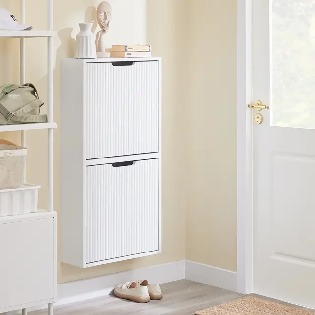 SoBuy Dvosobna čevljska omara z dvema vratoma, bela lesena, montaža navpično/vodoravno