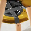Stolček združuje sodoben dizajn s praktičnostjo. Njegov kovinski sedež je hladen, trpežen in se zlahka očisti, medtem ko bukov okvir zagotavlja izjemno stabilnost.