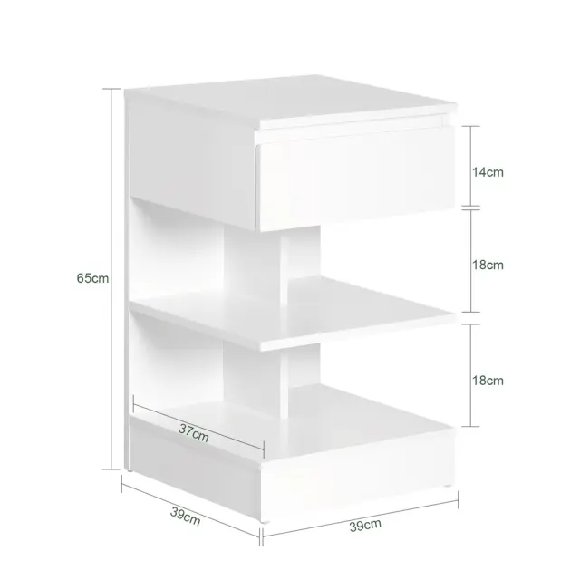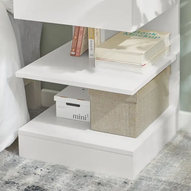 Ta nočna omarica vam ponuja organiziran prostor za knjige, očala, daljince in druge predmete, ki jih potrebujete pri roki. Njene odprte police omogočajo hiter dostop do pogosto uporabljenih stvari.