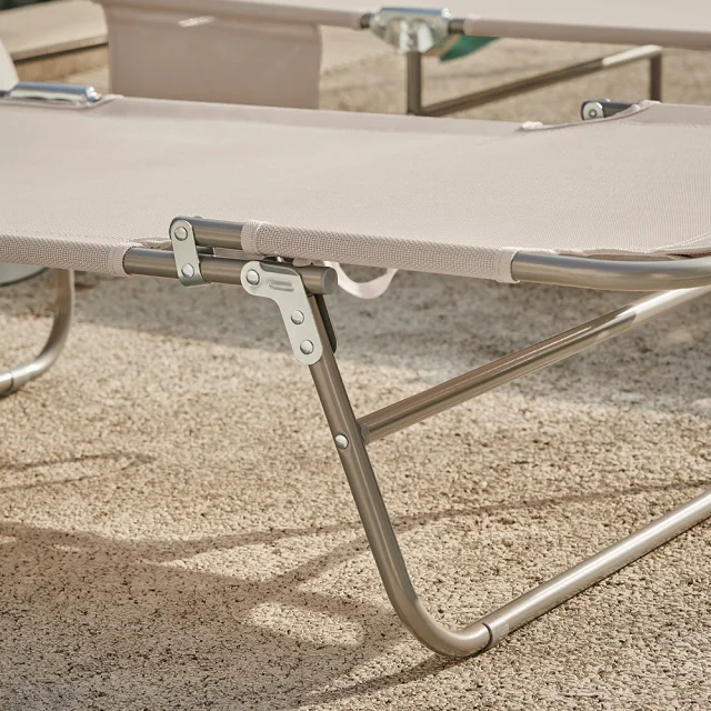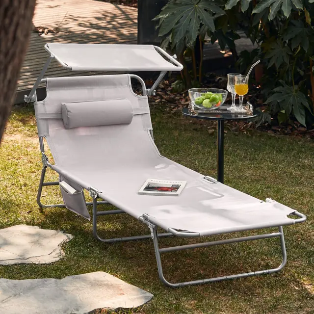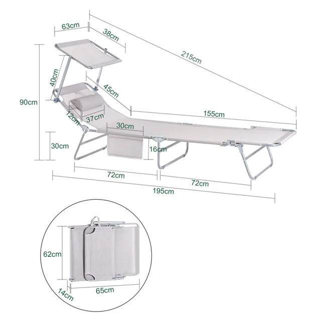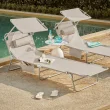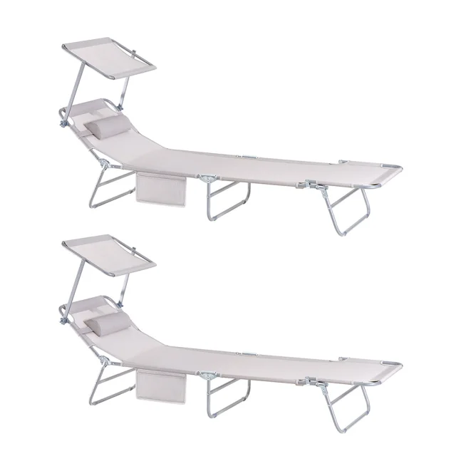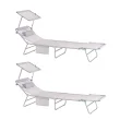SoBuy Komplet nastavljivih zložljivih ležalnikov za sončenje z senčnikom v bež barvi v obalnem slogu