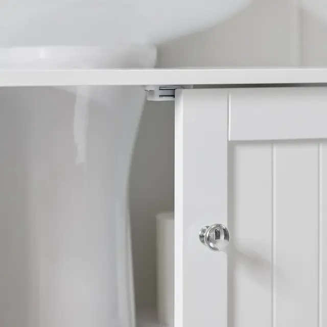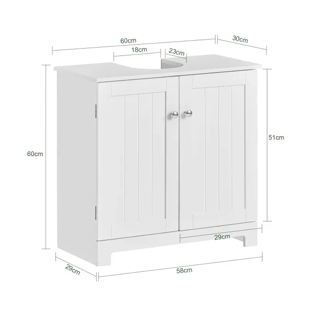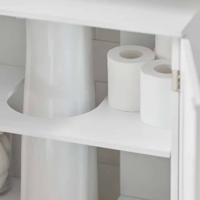 Izrez v obliki črke 'U' se zlahka prilega pod umivalnik: izrez v velikosti Š18 x D23 cm na vseh policah se lepo prilega pod večino podstavnih umivalnikov. (Pred nakupom izmerite).