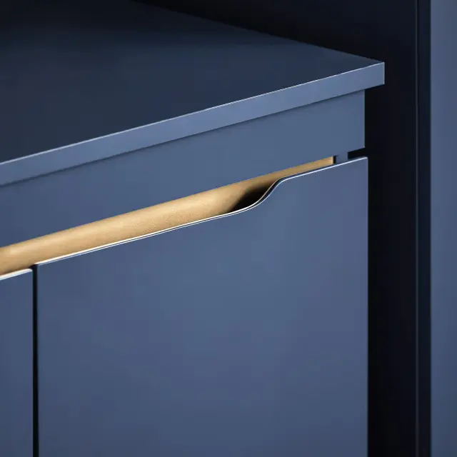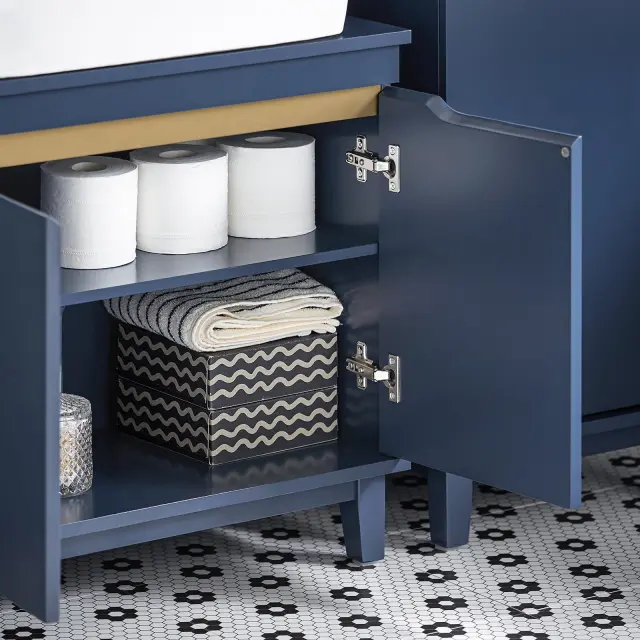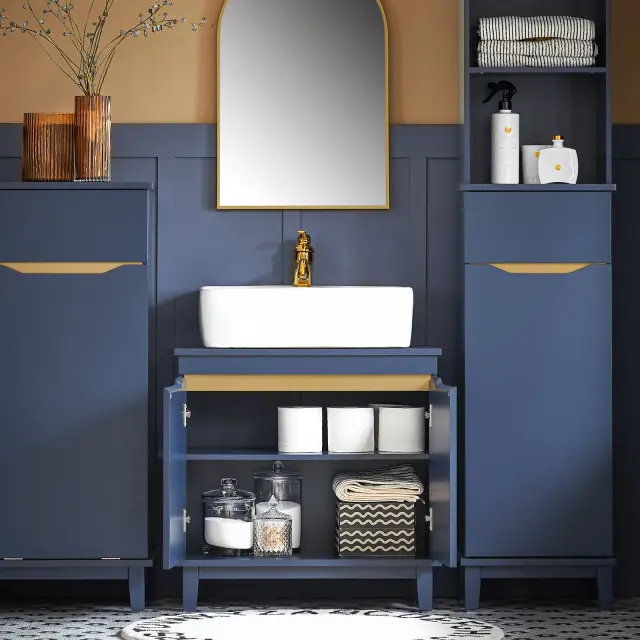 Moderno oblikovana omarica pod umivalnik v mornarsko modri barvi je resnično privlačna in impresivna kadarkoli.